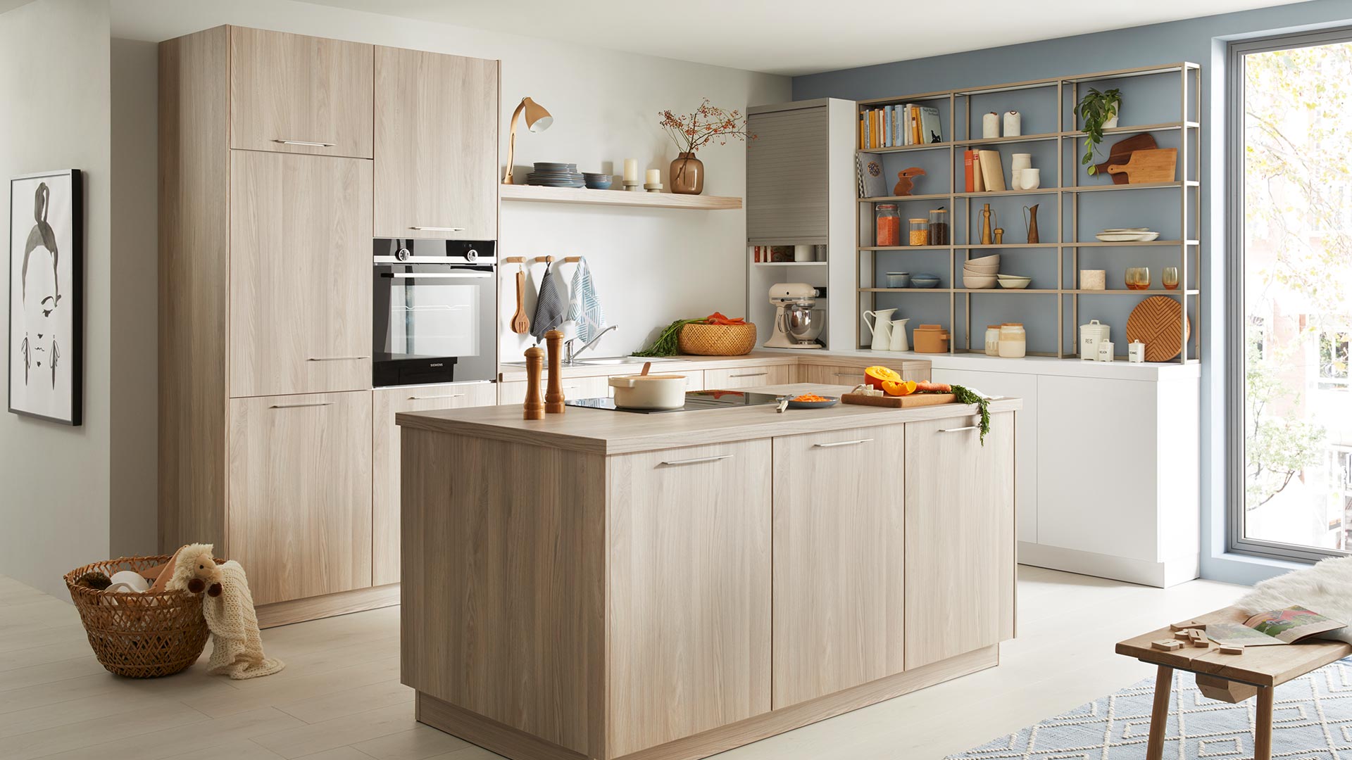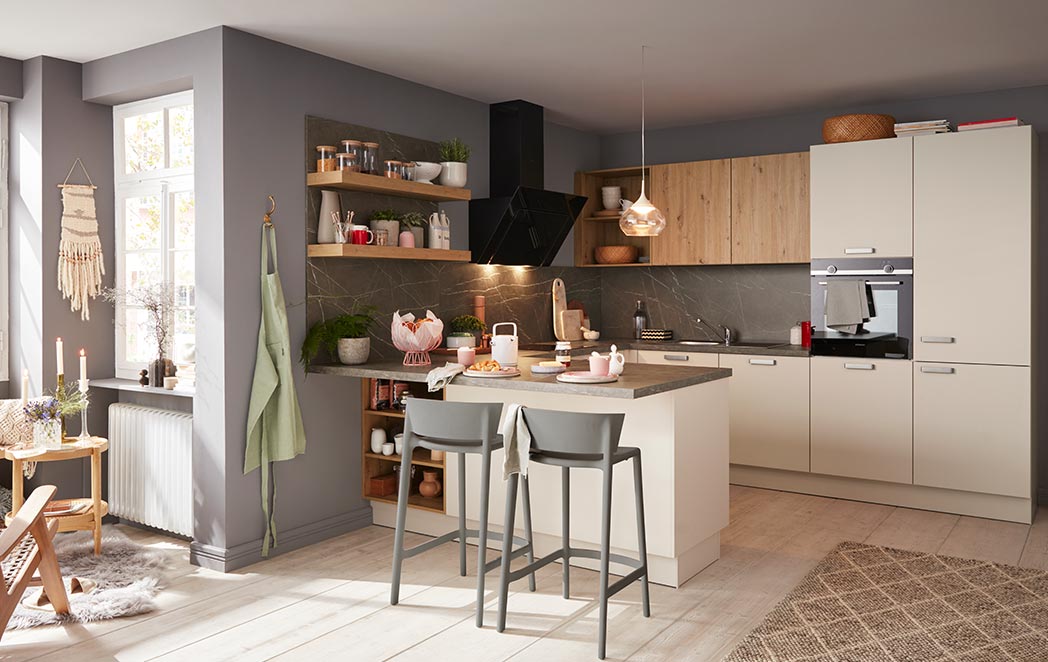 Dazu lassen sich viele Farben und Materialien kombinieren und damit wirkt diese Küche frisch und zeitlos.