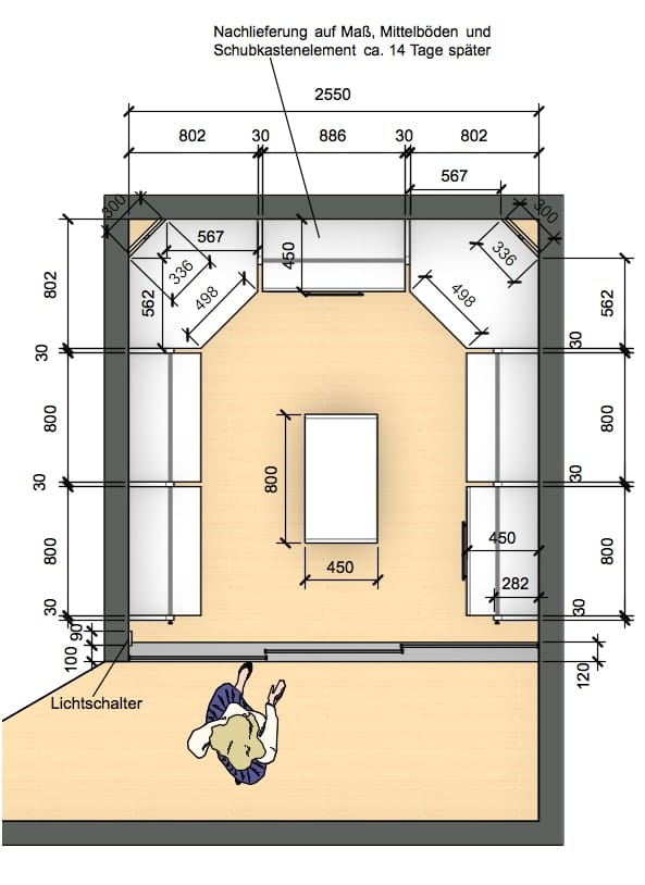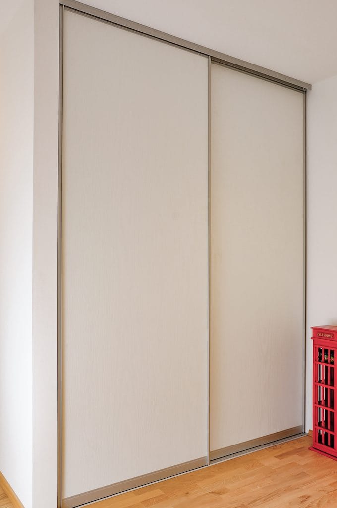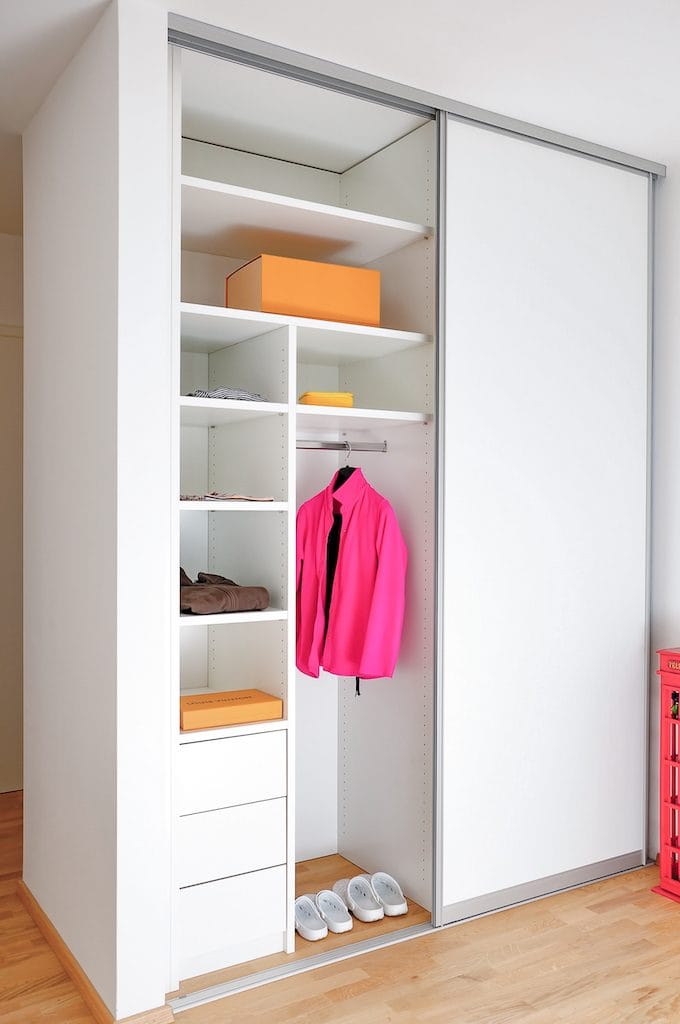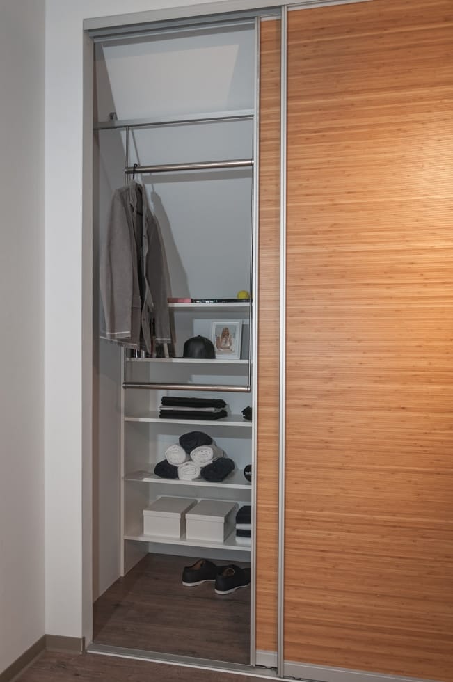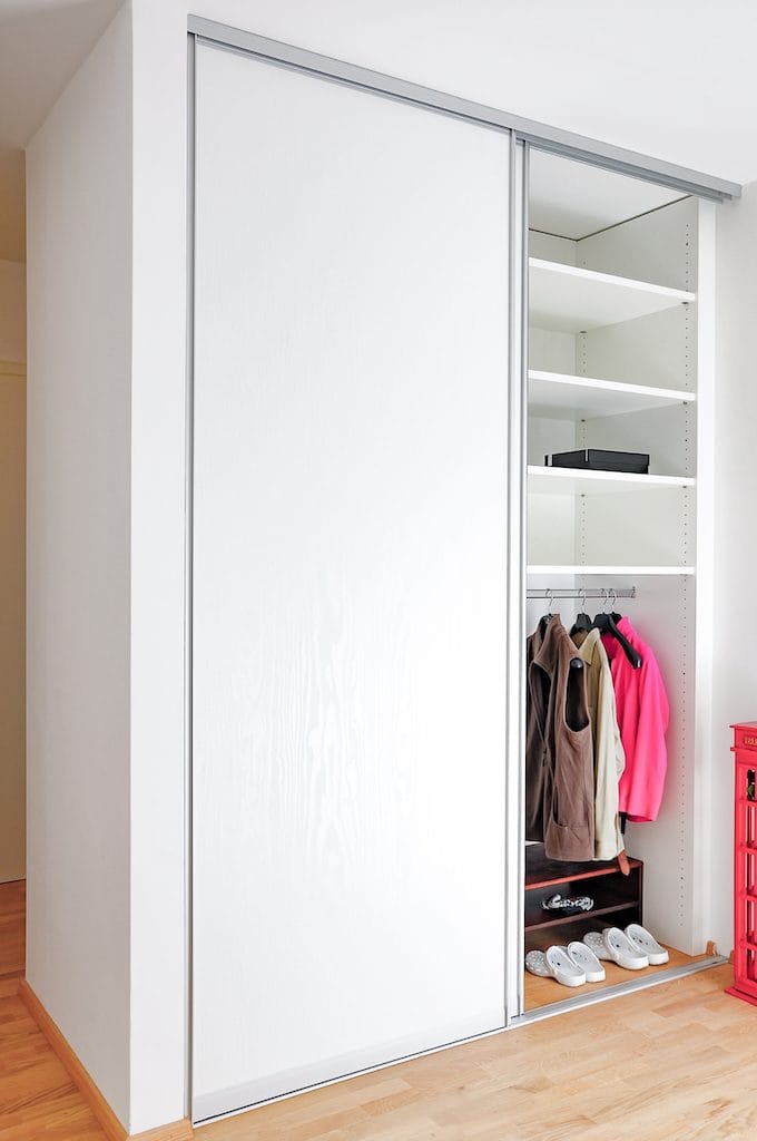 Aus Platzgründen sollen Schiebetüren eingeplant werden, neben Jacken möchte der Kunde auch Mäntel aufhängen können.