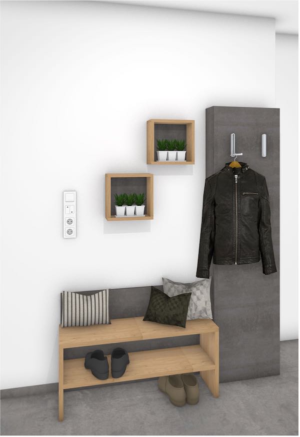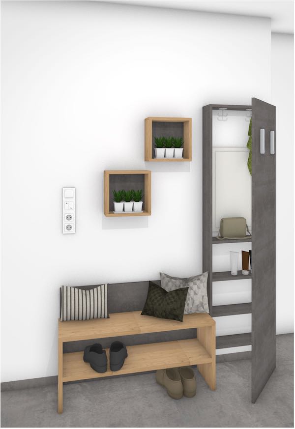 Im Neubau hat der Architekt eine Nische im Flur als Garderobenbereich vorgesehen.